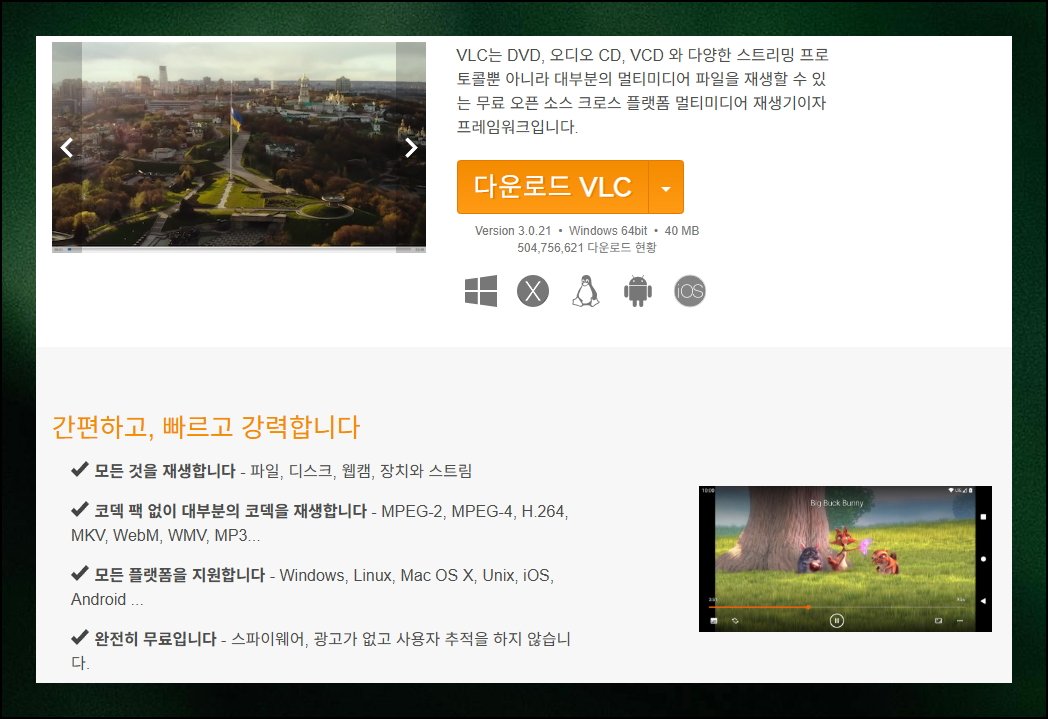 프로그램 공식 사이트에 방문하면 다운로드 버튼을 쉽게 찾을 수 있어요. 윈도우는 기본이고 리눅스, 맥북, 안드로이드까지 폭넓게 지원합니다. VLC 소개 페이지를 보면 추가 확장 없이도 대부분의 영상 형식을 재생할 수 있다고 합니다. HEVC는 H.264 코덱과 밀접한 관련이 있어요. 공식 안내문에 따르면 H.264 포맷 역시 문제없이 재생된다고 명시되어 있습니다.