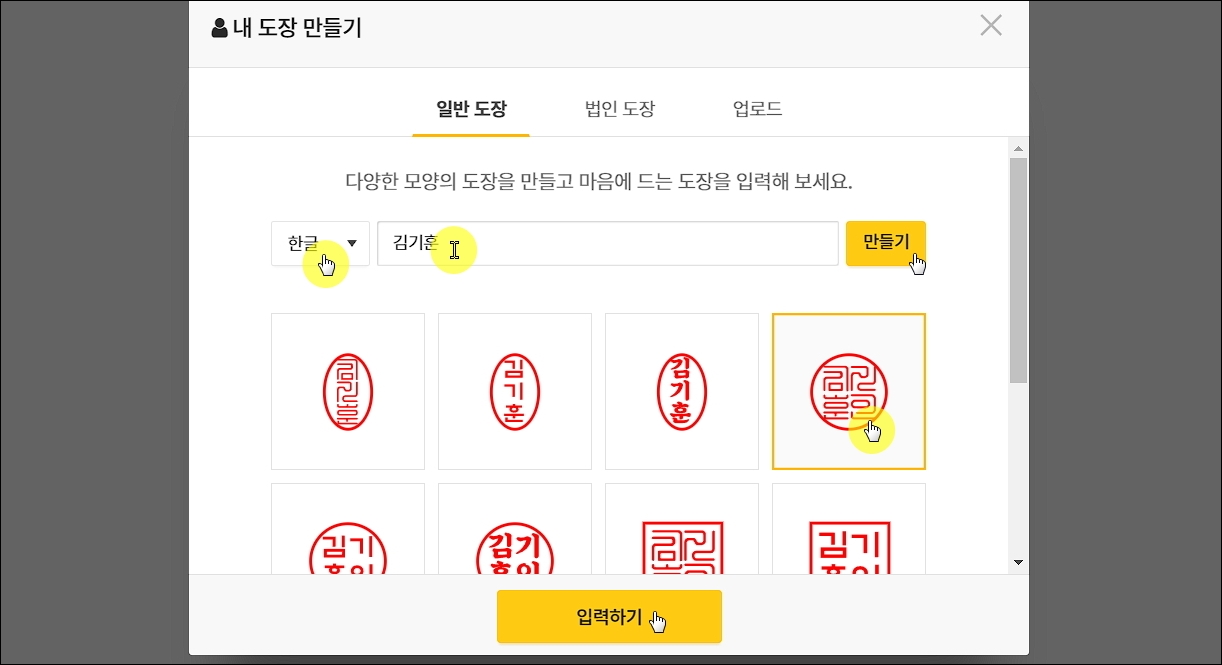 내 마음에 맞는 인터넷 도장만들기 안내.