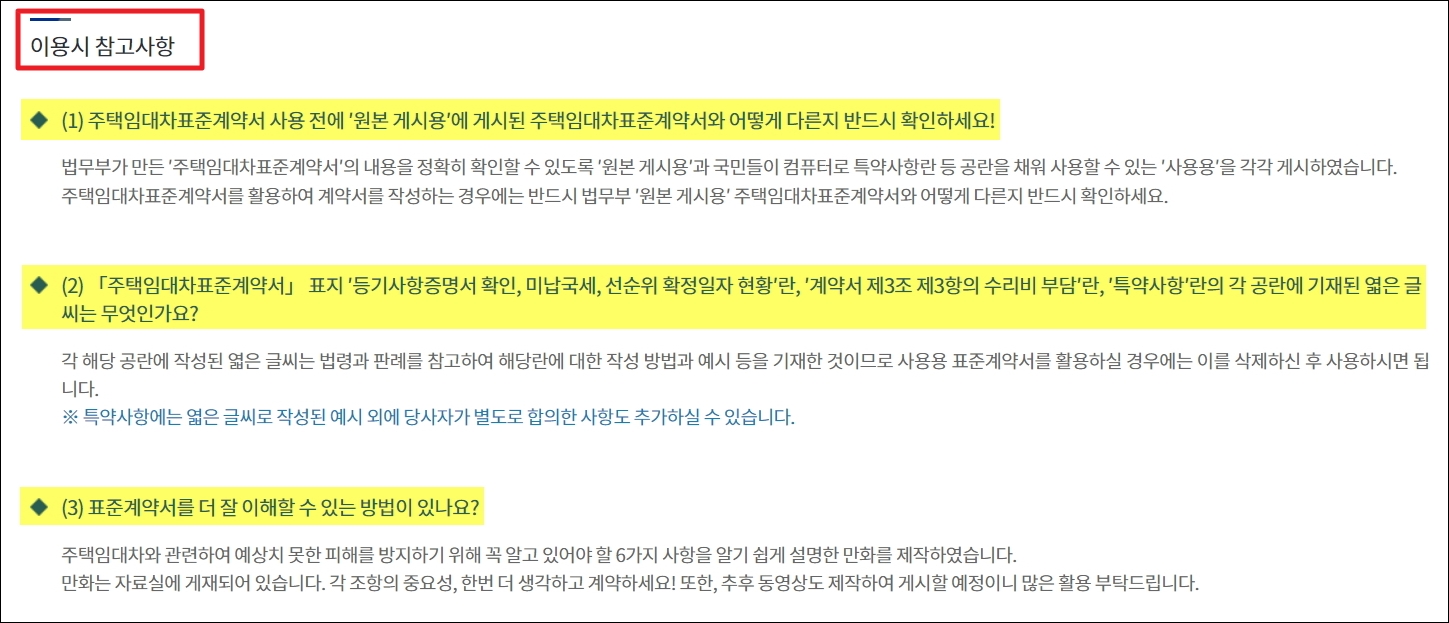 ▼우리가 양식 파일을 무료로 다운 받았던 사이트를 보면 임대차 계약서 양식을 사용할 때 참고해야 할 사항이 적혀 있습니다.
