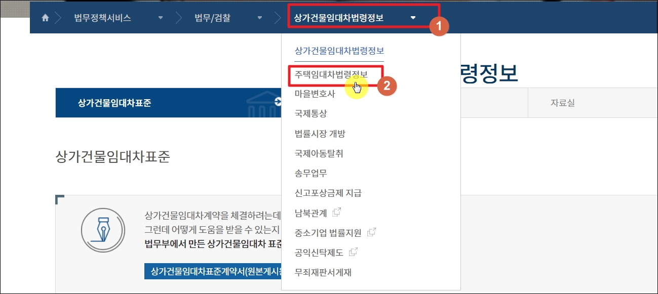 ▼앞에서 언급한 바와 같이 이렇게 중요한 부동산 임대차 계약서 무료양식 파일을 다운 받는 방법을 알려드리겠습니다. 파일을 첨부해 드릴 수는 있으나 아무곳에서나 계약서 양식을 다운 받기 보다는 신뢰할 수 있는 공공기관 사이트에서 제공하는 최신 버전의 자료를 이용하는 것이 좋습니다. 클릭 몇 번만 하면 쉽게 부동산 입대차 계약서 양식을 내려 받을 수 있어요. 그럼 법무부 사이트에 접속하여 해당 자료를 무료로 다운 받아 보겠습니다.