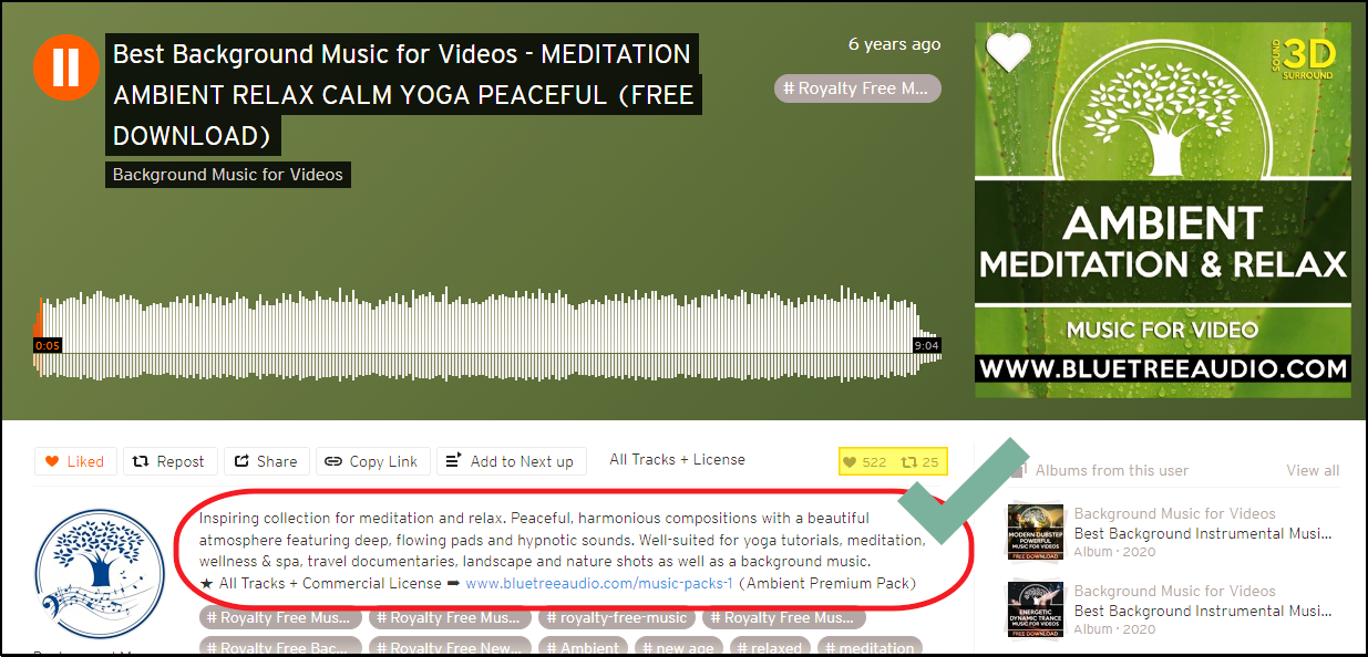 좋아요 갯수나 플레이 횟수도 나와 있으니 연속으로 듣고 싶은 명상음악을 찾을 때 참고하시길 바랍니다.