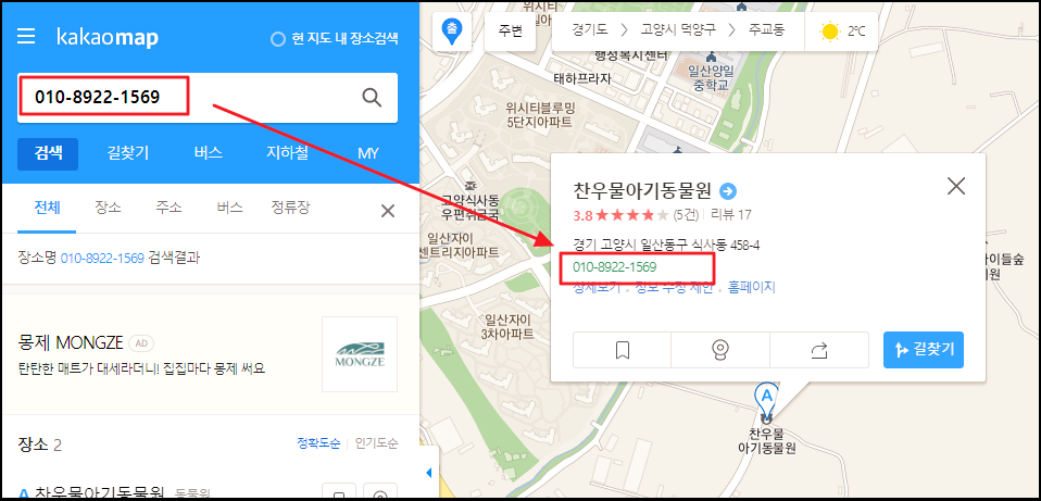 ▲ 첫 번째 방법 - 전화번호로 주소 찾는법
