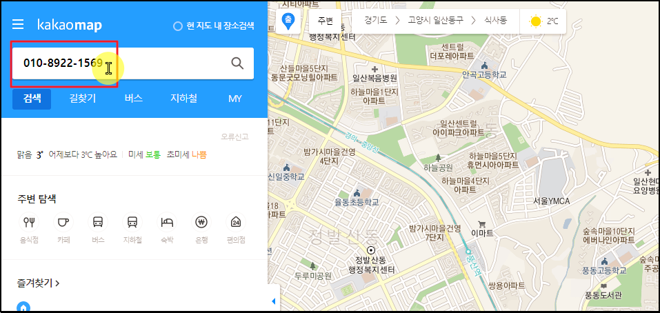 ▲ 제가 입력한 집전화번호로 검색이 된 곳에 대한 정보가 나타났습니다.