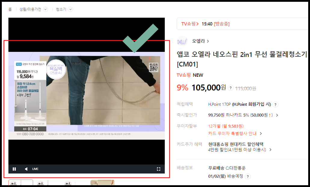 ▲ 일반적으로 홈쇼핑에서 판매가 되는 제품의 경우, 방송이 진행 중일 때만 구매가 가능한 일이 많습니다.