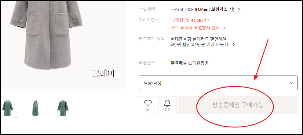 ▲ 앞서 언급한 바와 같이 일부 상품의 경우에는 현대홈쇼핑 방송이 진행중일 때에만 구매가 가능합니다.