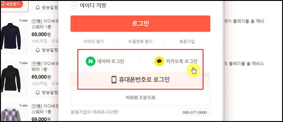 현대홈쇼핑을 이용해 본 분들은 해당 사이트의 계정이 보유하고 계시겠지만, 그렇지 않은 경우에도 네이버나 카카오톡 아이디를 이용하여 간편하게 회원가입 및 로그인이 가능하오니 참고해 주시길 바랍니다.