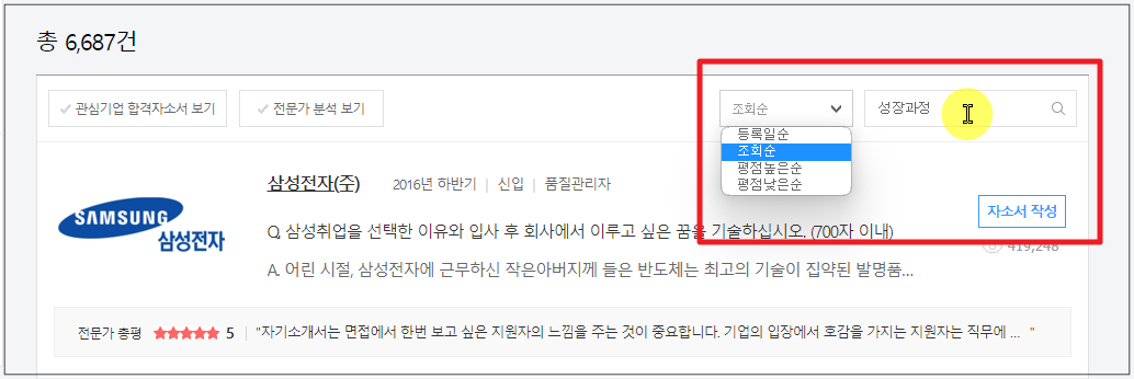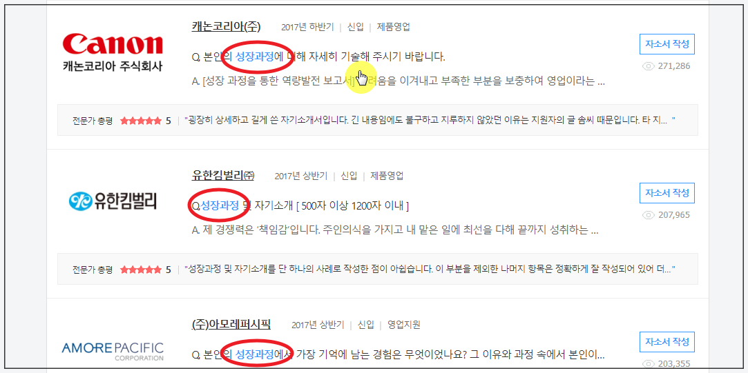 합격자에 자기소개서 성장과정 잘쓴예를 참고해 보세요. 그대로 똑같이 쓰라는 얘기는 아니고, 작성하는 노하우를 배우라는 의미입니다. 이러한 기술적인 부분도 취업에 있어서 생각보다 큰 부분을 차지하기 때문입니다.